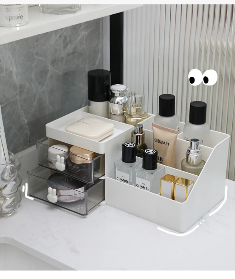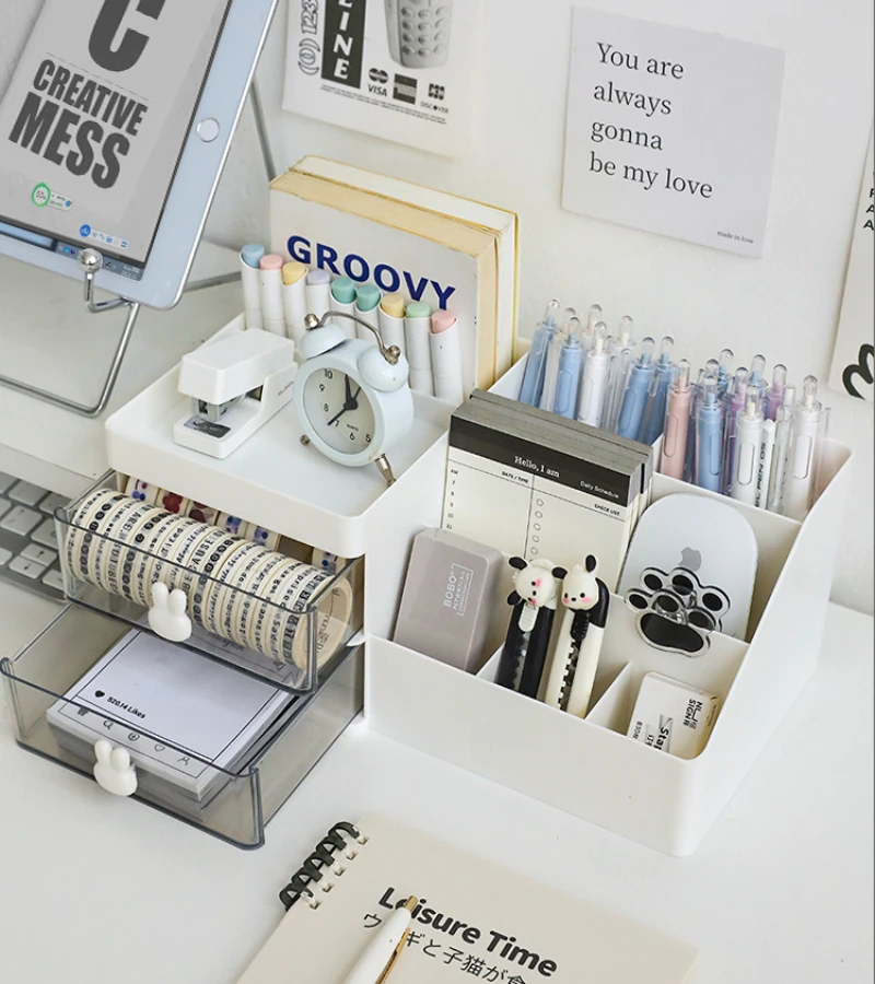Desktop Transparent Cosmetics Storage Box Desktop Organizer with Drawers Pen Holder Stationary Storage Rack for Office Desks
